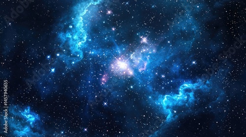 A swirling cosmic nebula, filled with vibrant celestial light.
