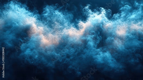 A swirling, ethereal mist of blue and soft orange hues, creating an atmospheric and dynamic visual effect against a dark background.
