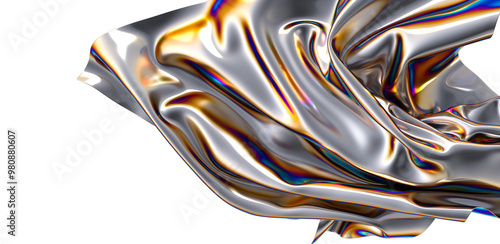 A swirling iridescent abstract form almost like a liquid metal