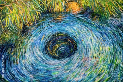 A swirling vortex of blue and green, depicting a dynamic water scene.