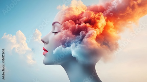 A swirling vortex of colors and shapes inside a human head, representing a mind filled with creativity and imagination.