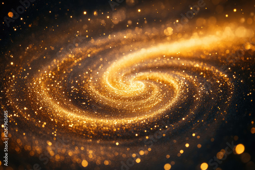 A swirling vortex of golden sparkles, resembling a celestial galaxy or cosmic dust cloud.