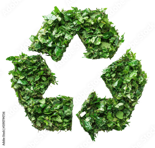 A symbol representing chaos is created with lush green leaves against a clean white background