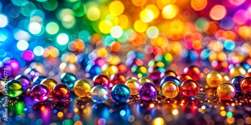 A Symphony of Color Vibrant Spheres Glimmering Against a Kaleidoscope of Lights, Abstract, Bokeh, Colorful, Festive
