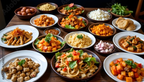 A table generously filled with ready-to-eat meals spread for enjoyment and culinary delight