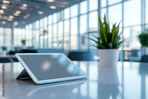 A tablet mockup leaning against a minimalistic stand
