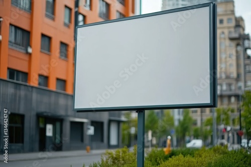 A tall blank billboard on an industrial building, ready for advertising opportunities in an urban setting.