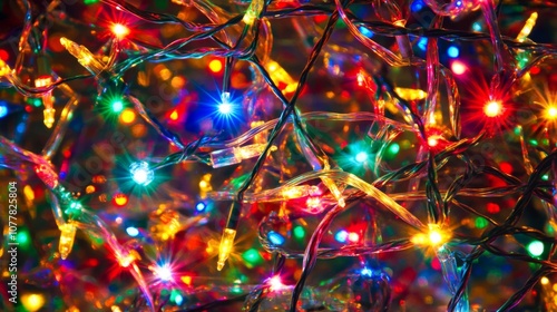 A tangled mass of colorful Christmas lights illuminate the darkness with a festive glow.