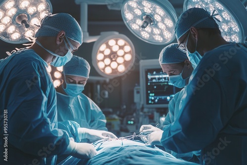 A team of skilled surgeons conducts a surgical operation in a sterile environment, focused on the patient and the procedure. Generative AI