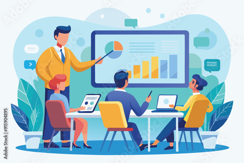 A team participates in a business training session, focusing on interactive presentations and using tablets for enhanced learning and collaboration