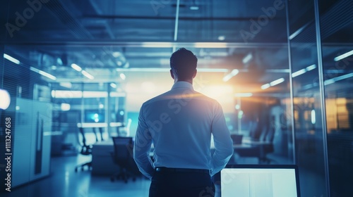 A technician calibrating automated lighting systems in a smart city development, Lighting system calibration scene, Smart city construction style