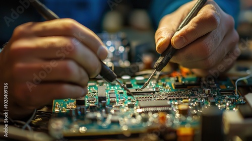 a technician repairing electronic circuitry, showcasing the skill and expertise required in tech maintenance