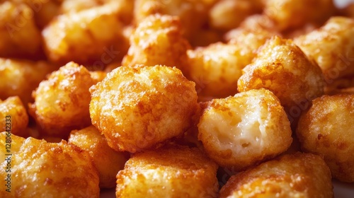 A tempting close-up of crispy, golden-brown tater tots piled together, showcasing their fluffy texture.