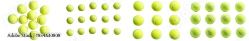 A tennis ball is isolated on a white background, showing the full depth of field