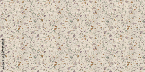 A terrazzo texture on an off-white base, sprinkled with subtle pastel fragments in muted lavender, faded aqua, and light peach