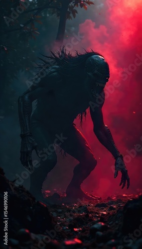 A terrifying, shadowy creature lurking in the dark, its monstrous form barely visible, claws extended, hinting at unspeakable horror and lurking danger , unseen, creepy, menacing