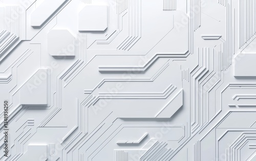 A textured, abstract design featuring geometric shapes and lines, resembling a circuit board or digital layout on a white background.