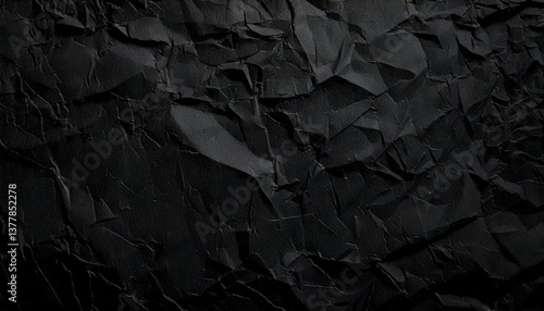 A textured, crumpled black paper background with a modern, abstract aesthetic