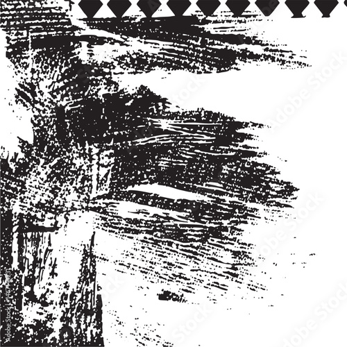 A textured dark brushstroke creates a blurred landscape scene.