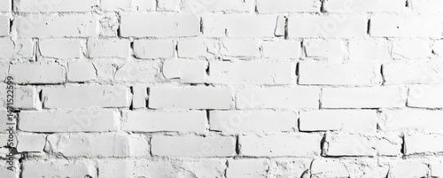 A textured image showcasing a white brick wall with visible mortar and subtle cracks, offering a clean and minimalist aesthetic ideal for design projects. : Generative AI