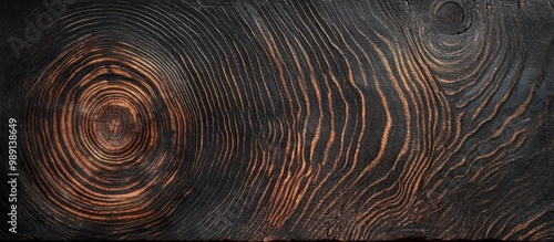 A textured surface with concentric circles resembling tree rings, showcasing a blend of dark colors and patterns, evoking natural elements and organic design.
