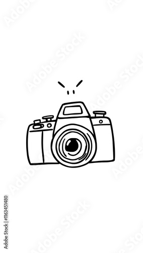 A thick-lined doodle of a camera, drawn in simple black outlines with no fill color on a plain white background.