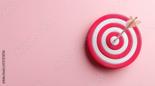 A Three-Dimensional Arrow Strikes the Bullseye of a Pink and White Target on a Pink Background.