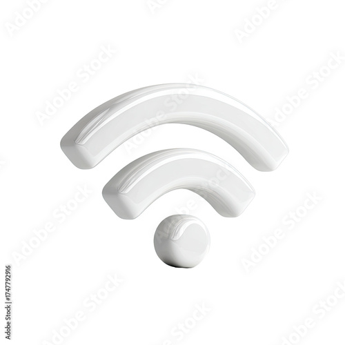 A three-dimensional, glossy white wifi symbol, rendered with subtle highlights and shadows, against a black background
