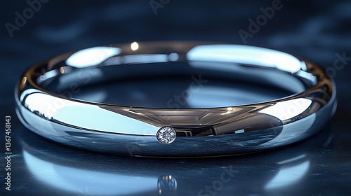 A timeless platinum band, subtly adorned with a single diamond, reflects a promise of enduring love, gleaming under cool, dramatic light.