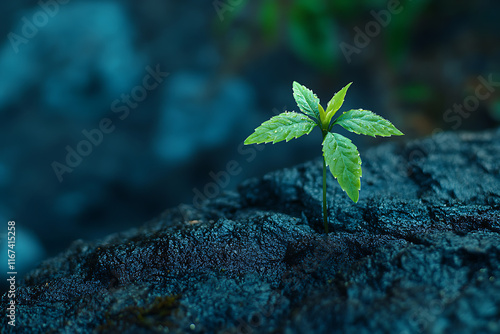 A Tiny Sprout Emerging from the Dark Rock
