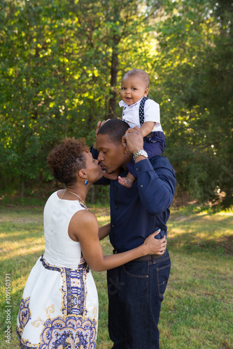 A toddler and his parents enjoying the day at the park