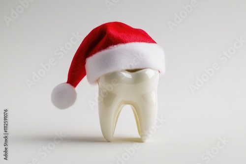 A tooth with a Santa hat, suitable for holiday decorations or advertising