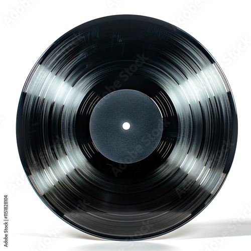 A top view of a black vinyl record showcasing grooves for audio playback. isolated on white background