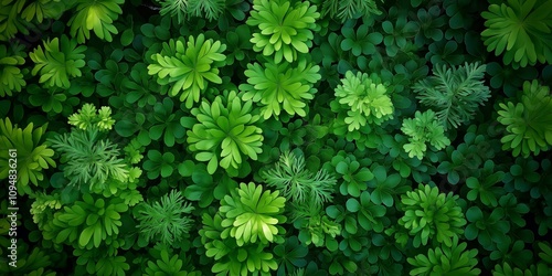 A top view of lush green foliage showcasing intricate leaf patterns and vibrant nature's beauty and variety.