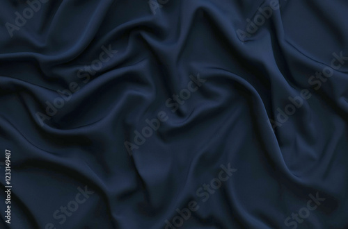 A top view of navy blue cotton jersey material with subtle wrinkles, laid flat on a solid background. The texture of the fabric is visible, offering a clean, minimalist design, perfect for stock photo