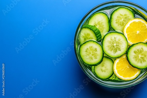 A top-down view of a fruit-infused detox water with floating citrus slices