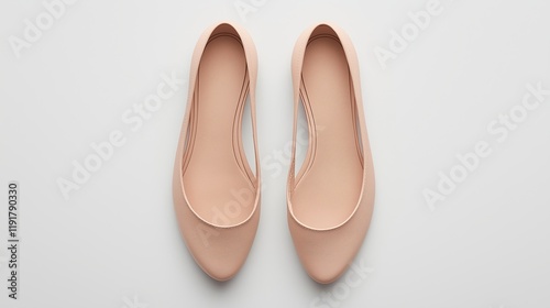 A top-down view of a pair of elegant ballet flats, displayed on a clean white background, showcasing minimalist style and fashion