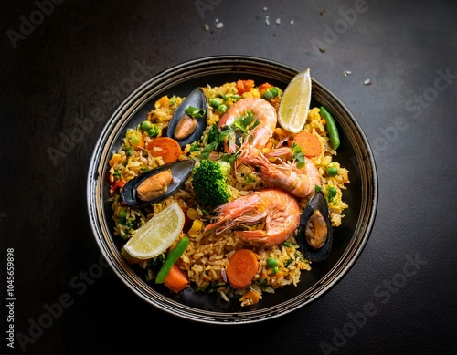 a traditional dish featuring seasoned rice accompanied by seafood and vegetables