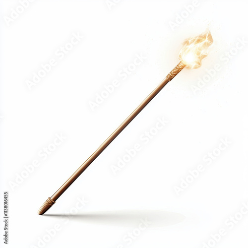 A traditional flaming torch with wooden handle, symbolizing light and guidance.