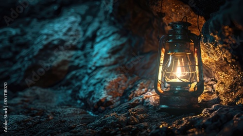 A traditional lantern is illuminated in a dark environment, providing a warm and cozy glow