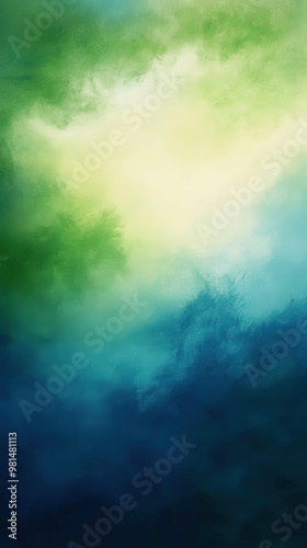 A tranquil blend of green and blue colors creating an abstract atmosphere reminiscent of serene nature scenes