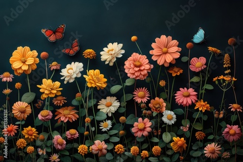 A tranquil garden with blooming flowers and butterflies, Natural, Bright and colorful, Watercolor, Expressing peace and delight