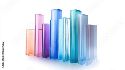 A transparent bar chart, modern analytics concept, glass effect, cool tones, isolated on white background