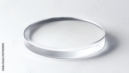 A transparent circular lens resting on a light background, showcasing a clean and simple design.