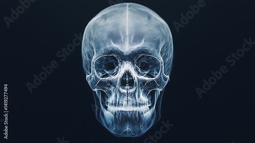 A transparent skull illustration, showcasing intricate details and a haunting aesthetic against a dark background.