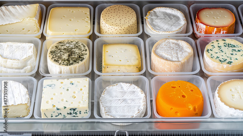 A tray of assorted cheeses, including some that are yellow