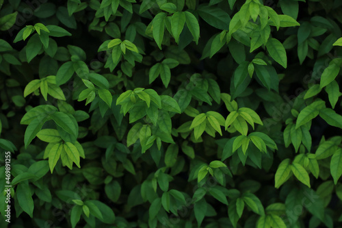A tree wall covered Fresh Green Leaves out of focus, design for eco wall