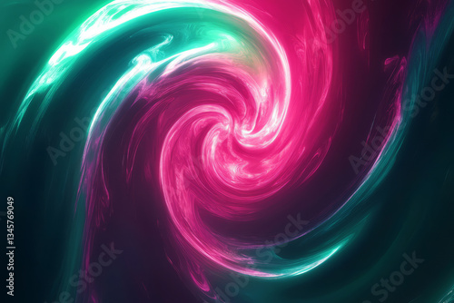 A trippy, colorful abstract background with endless spirals. Fractal-like swirling patterns in glowing magenta, deep emerald, and electric teal create a mesmerizing, hypnotic vortex of color.