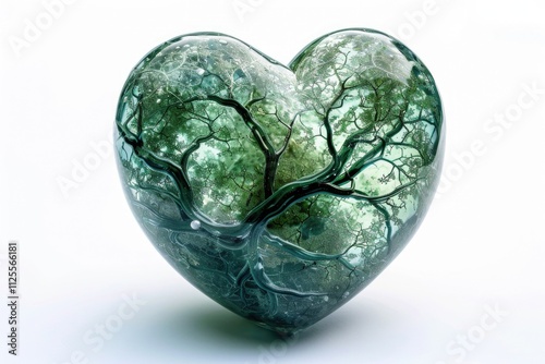 A unique design featuring a green glass heart with a small tree growing inside