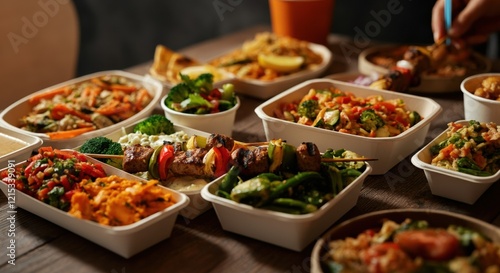 A variety of delicious dishes served in takeout containers, perfect for sharing